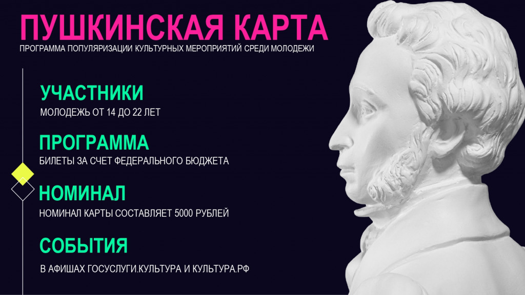 Пушкинская карта. Программа популяризации культурных мероприятий среди молодежиКультура.РФ. Портал культурного наследия, традиций народов России
